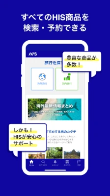 HISアプリで、お得な海外・国内旅行を簡単予約。限定クーポンやセール情報で賢く旅を計画できます。休暇、出張、家族旅行など、多様なHIS旅行商品を比較し、ぴったりの旅を見つけましょう。