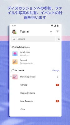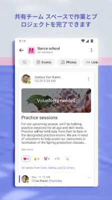 Microsoft Teamsは、コミュニティ、家族、友人、同僚を結びつけ、作業を効率化するオールインワンのコラボレーションツールです。チャット、会議、ファイル共有、タスク管理、予定表機能が安全な環境で統合されており、アイデアの共有からプロジェクトの達成まで、すべてを一箇所で実現できます。
