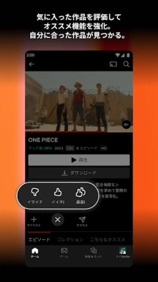 Netflixは、常に新しい発見と出会いを提供します。毎週更新される豊富なライブラリの中から、まだ見ぬ名作や、あなたの琴線に触れる最新のエピソードを簡単に見つけることができます。視聴すればするほど、Netflixはあなたの好みを学習し、驚くほどパーソナルな作品をおすすめ。まるで専属のコンシェルジュがいるかのように、次に見るべき一本へと的確に導きます。